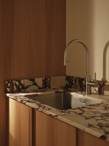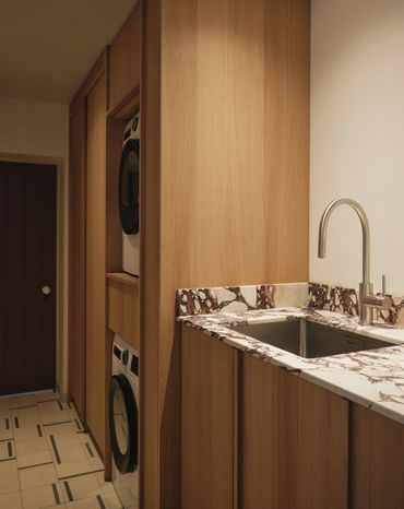Softly detailed cabinetry, restrained proportions, and a muted palette allow the joinery to sit comfortably within the architecture rather than dominate it.